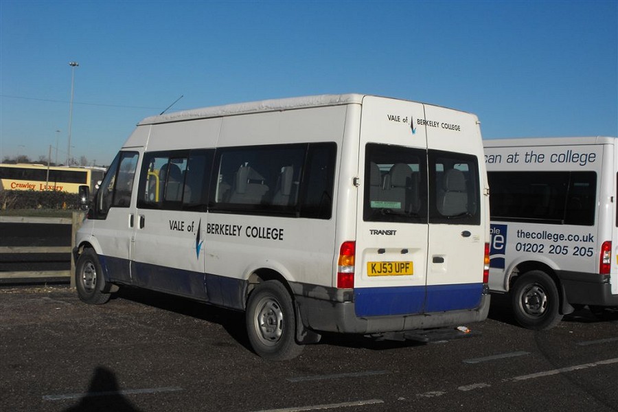 Details: Between 2003 and 2006 this Ford Transit minibus was fleetnumber 5596F in the Metronet BCV fleet. It later passed to the Vale of Berkeley College, although it retained its blue skirt livery making it fairly easy to spot. John found it parked at the NEC in Birmingham during a Clothes Show Live event on 8th December 2010. |