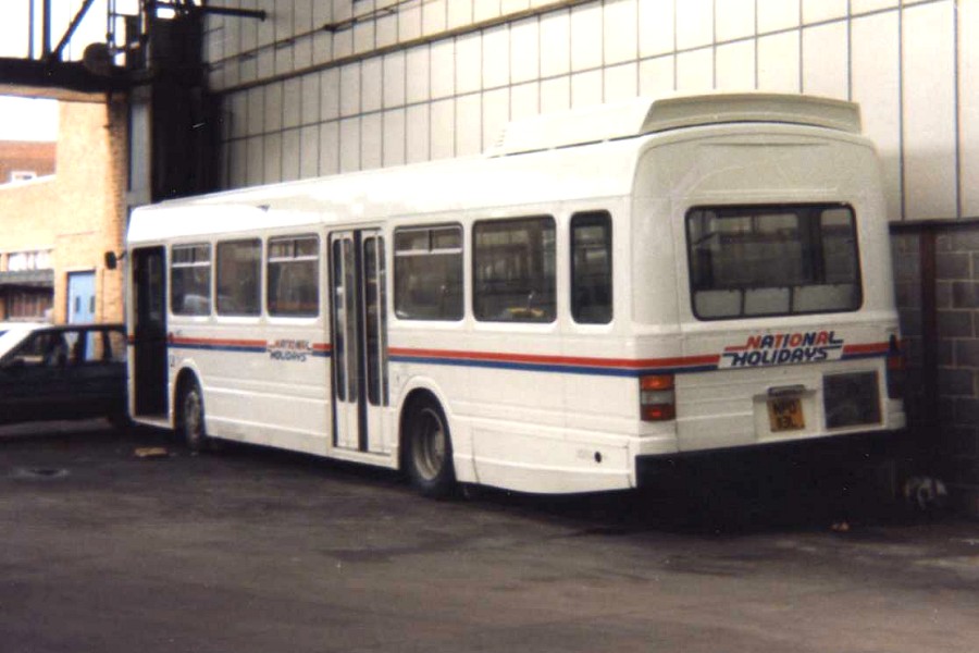 Details: London Country LN13 was illustrated last month in its final role, and this prompted a contribution from Malcolm Conway of the same vehicle. First up though is another from Graham Scrivener. As mentioned, the vehicle's first service vehicle role was (from August 1984) as a mobile office and waiting room for use by National Holidays at Scratchwood Services on the M1 motorway. This photo taken at Garston Garage on 18th March 1987 shows what is believed to be its initial livery. |