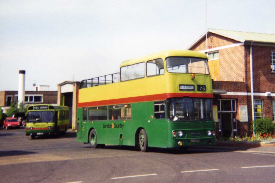 Details: One more bus to round off today's set, this is one of one only two 'modern' buses to have been converted specifically for use lopping trees. Alexander bodied Leyland Atlantean OYS200M was new to Greater Glasgow, passing in the late 1980s to London Country South West as their AN330 for use on LT tendered services. After replacement on these duties, it was converted into a partial open topper in late 1989 and given the new London and Country two-tone green and red livery. It was photographed at its home garage of Leatherhead on 26th April 1994. It was finally withdrawn the following year. The other tree lopper was a former Lincoln Bristol VRT converted by Luton and District in 1993. |