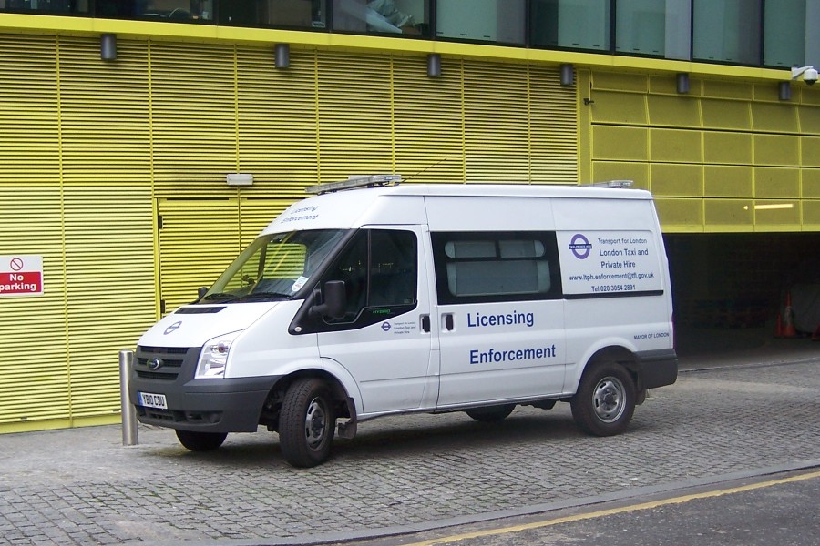 Details: This van, photographed at the back of the Palestra building in Southwark on 2nd March 2011 is presumably a replacement for similar-looking 6155F, and as such may be allocated a fleetnumber, although none is carried. As the front and side badging show, this Mk7 Ford Transit has an Ashwoods hybrid conversion, the same as on LBSL IRUs 6985F and 6986F. The purple roundels are the same as those recently applied to several Toyota Prius cars. |
