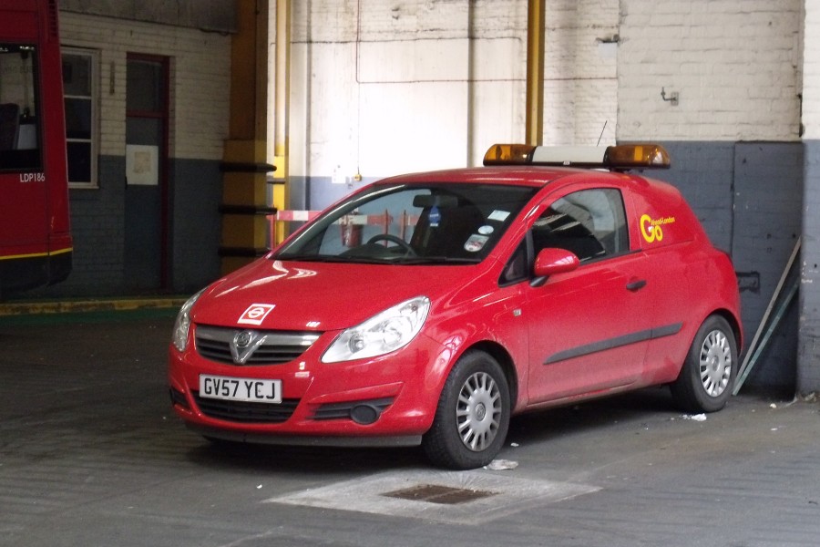 Details: Go-Ahead London has nine Vauxhall Corsa vans registered in the GV57xxx series. Among these, GV57YCJ is unique in having company logos and a light-bar. It is a route controller's vehicle based at Camberwell Garage, where it was photographed on 5th March 2011. |