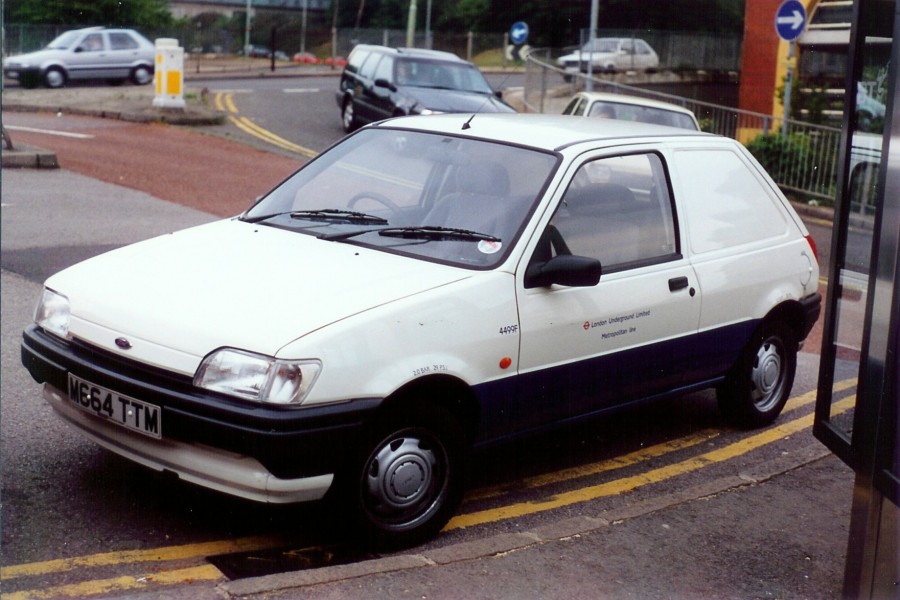Details: Ford Fiesta van 4499F was new in April 1995, but was destined to be the last of the model added to the central fleet for almost exactly ten years. Along with sister vehicle 4500F (delivered a few days earlier), the pair was allocated to the Metropolitan Line. 4499F was photographed at Rickmansworth Station. Note that the tyre pressure lettering includes both bar and PSI. |