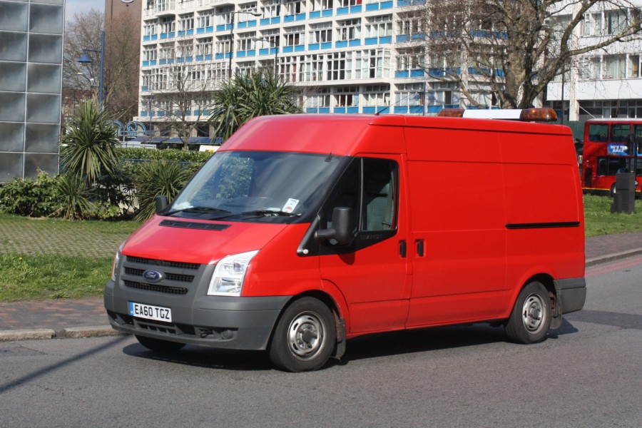 Details: Looking at this picture has taught me something new about Ford Transits! Seen rounding the Elephant and Castle on 21st March 2011, EA60TGZ is a medium-wheelbase Mk7 van operated by London Central from Peckham Garage. It had replaced equally anonymous short-wheelbase Mk6 ET05GXG a few months earlier. Comparison of the two photographs will show that the difference in length is barely discernible. However, the position of the gutter rail (to which roof-racks are attached) does vary. It turns out that all short-wheelbase vans have the rail immediately above the doors, while medium-wheelbase vans have it further up (near the top on mid-height vans like this one, half-way up on high-roof examples). |