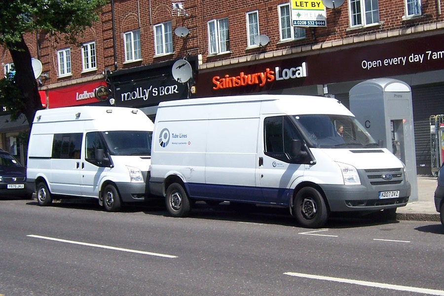 Details: Ray found a couple of Ford Transit vans parked on Bowes Road (near to Arnos Grove station) on 24th May 2011. To the fore was Tube Lines 6218F, new in 2007 and now due for replacement. The van behind was rather more interesting though. In plain white with fleetnumber 6123F, it had external lights on the sides and front. The number 6123F properly belongs to a mid-height Transit van in Underground livery, but the one here is a high-roof example. Registered LN08ZDS, it was new in 2008 and was originally used by the London Safety Camera Partnership (LSCP). It presumably carried a similar livery to their other vans, such as 6121F. In fact the number 6123F was probably assigned in error to follow on from LSCP 6120F to 6122F. The LSCP unit appears to have scaled back its operations some time in 2009, but this is the only one of their vehicles to have been reported since. |