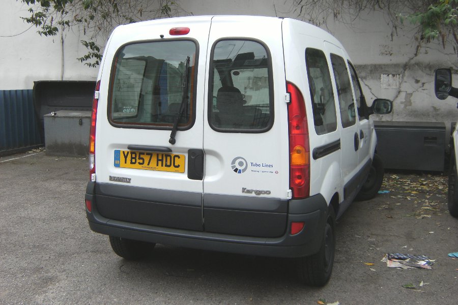 Details: Renault Kangoos lack confidence, and usually park themselves such that their faces are hidden! Someone should tell them they don't look any better from the back. Tube Lines 6429R was found in the small yard at Borough, Union Street on 28th May 2011. Latterly based at Stratford Market Depot, this may be a transfer. Reports please. |