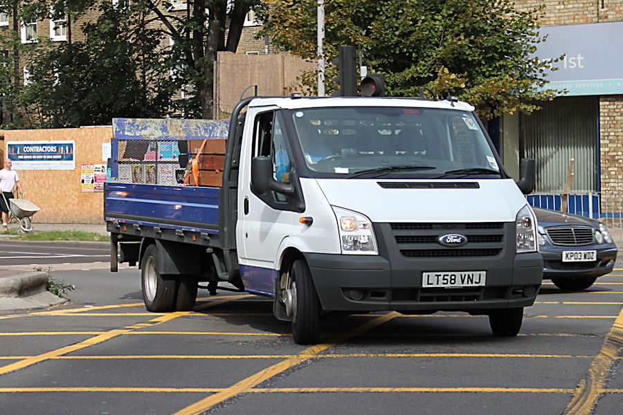 Details: 6570F was a single-cab Ford Transit dropside truck new in Tube Lines livery in November 2008 and based at Acton Works. In early 2011 it had its logos and fleetnumbers removed, for reasons unknown. On 22nd August 2011 Kim caught it passing through West Kensington. |