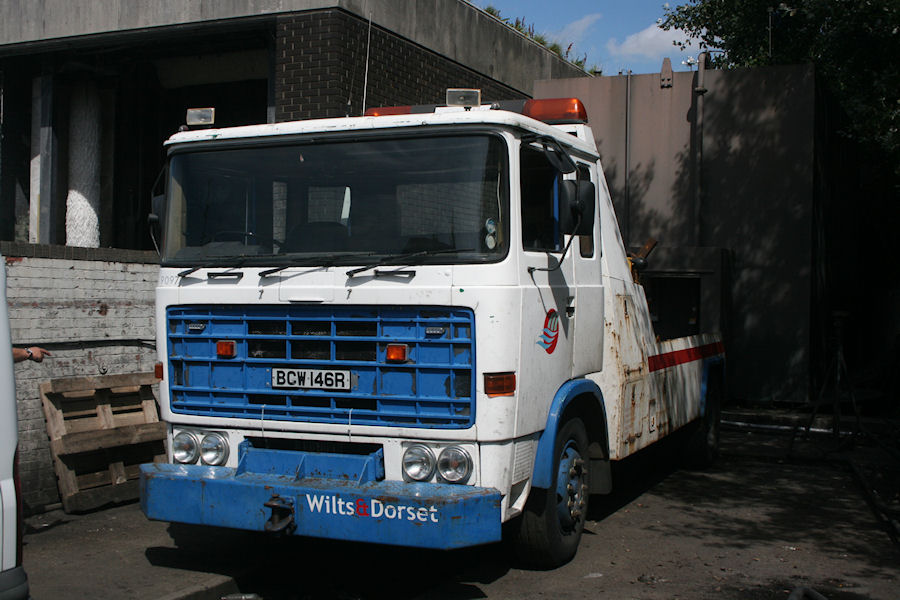 Details: ERF service vehicles have never been common in London, with just four known of. One remains, a standby fuel tanker used by Arriva London. In the provinces however, many bus companies made use of ERF recovery vehicles. A surprising survivor, found in Poole bus garage on 22nd August, is B-series BCW146R. It carries the modern livery of Wilts and Dorset, although judging by the Preston registration it must have been acquired second hand. A more modern recovery vehicle was also present (Iveco L724WDL), and the ERF is most likely out of use. |
