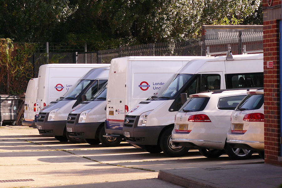 Details: A peek into the yard at Leyton Westdown Road on 1st September 2011 with several new vehicles (or at least parts of them!) visible. Nearest the camera are a pair of Volkswagen Passat estates, a rare type that has never been shown on LTSV before. Next are Ford Transit crew vans 6773F (nose out) and 7039F (nose in). The latter is of interest, being an Ashwoods hybrid conversion similar to LBSL 6985F/6986F. The two silver Transits are minibuses 6819F and 6818F. Behind them is a vehicle that was not positively identified. However it had Ashwoods badging on the rear (like 7039F) and appeared to be registered YC11-something. This is presumably YC11AEW, for which the fleetnumber 7040F would seem to be suitable! Bringing up the rear is Volkswagen Transporter 6866VW. |