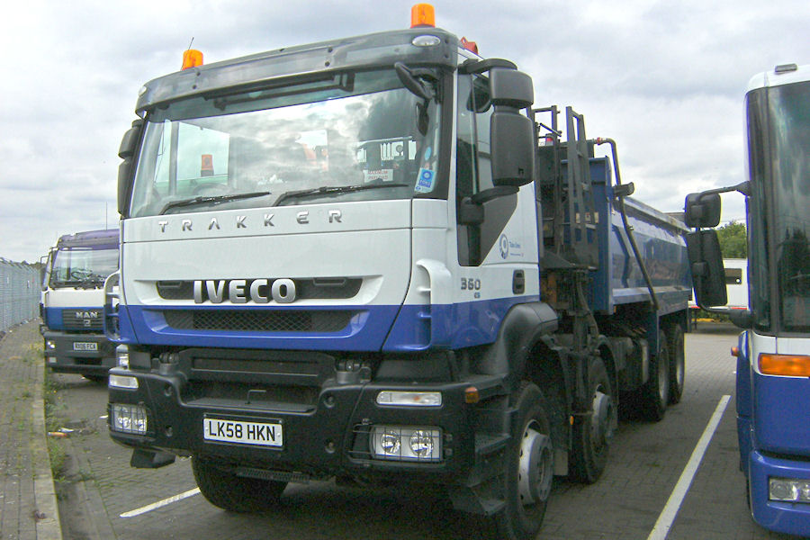 Details: Quite possibly the heaviest service vehicle in use at present, LK58HKN is a four-axle Iveco Trakker grab-loader. The Thompson bodywork has a payload of almost 16 tonnes (or 13 cubic metres), while the Epsilon grab has a 500 litre bucket. It can usually be seen in the lorry yard at Acton, where it was photographed on 31st August 2011. |