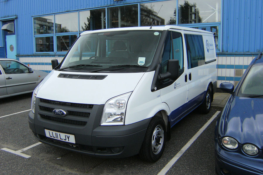 Details: Fleetnumbers in the 71xx range appeared in all sorts of order, with 7190F being among the first. It was applied to a short-wheelbase Ford Transit crew van assigned to Tube Lines at Frank Pick House (where it was photographed on 31st August 2011). The side logo is of the more normal sized compared to 6091F parked nearby. |