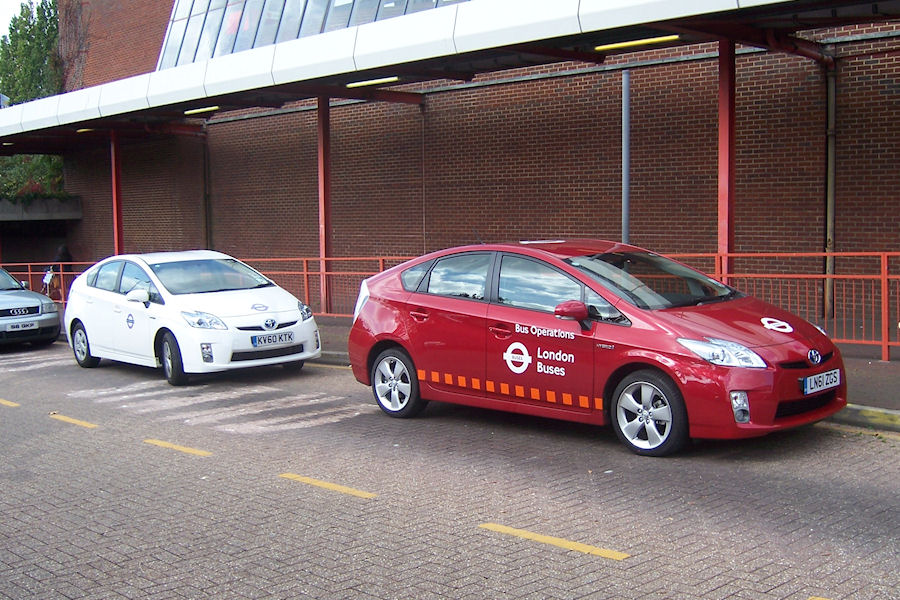 Details: With several resident Honda Civics, it was no surprise that Eltham Bus Station was one of the first locations to receive a new LBSL Toyota Prius in September 2011. Photographed there on the 23rd, LN61ZGS was parked in front of TfL Private Hire KV60KTK. Eltham is also home to one of the silver Prius cars new in 2010 but getting all three in one picture might be tough. |