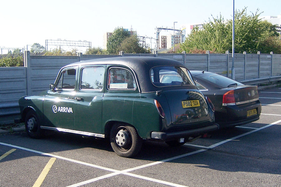 Details: It appears that the Grays-based Arriva operation is following Kent Thameside in using former London taxis as crew ferries. Found in the Lidl car park in Romford on 3rd October 2011 was green P580SUV, complete with Arriva fleetnames but no apparent fleetnumber. The car alongside is also a service vehicle but it seen more clearly in the next picture... |