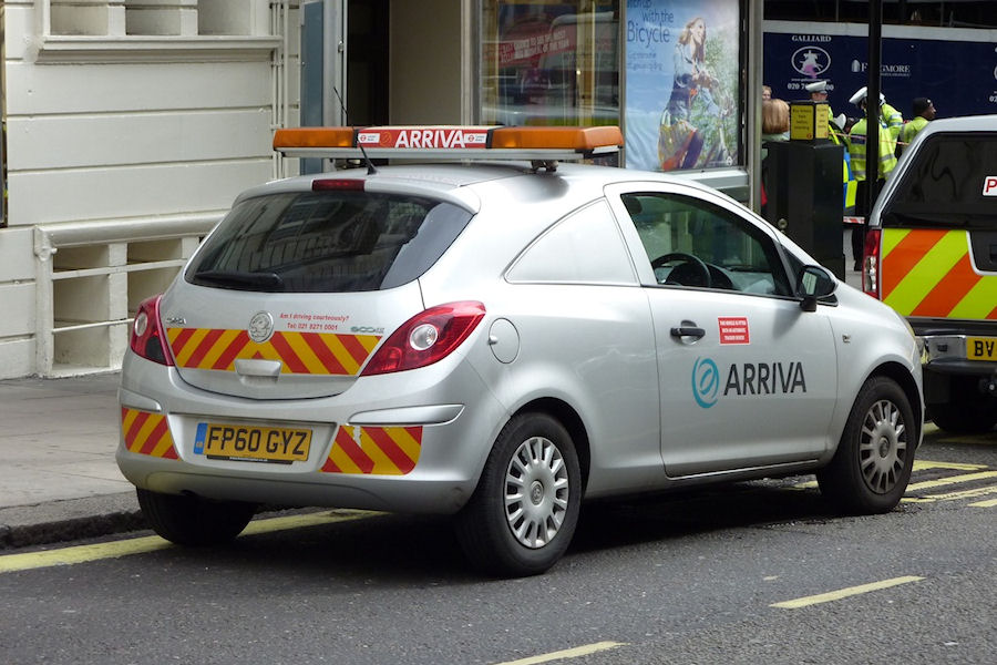 Details: Arriva London have two silver Vauxhall Corsa vans for use by service controllers. FP60GYZ is based at Edmonton (the other is at Norwood), but on 20th September 2011 it was called to an accident at Aldwych. Note the varied collection of lettering, including an Arriva name and logo along with two London Buses stickers squeezed onto the light-bar. |