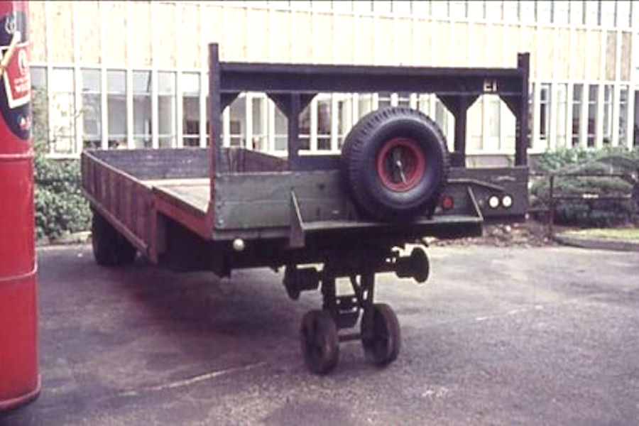 Details: This single-axle step-frame dropside trailer photographed at Chiswick Works on 6th October 1970 is clearly numbered E1. This is probably the Eagle trailer that normally operated with Bedford OSS artic tractor 953B. However, 953B was new in 1951 whilst E1 was listed as being into stock in 1957. Could it be that the tractor and trailer combination was treated as a single numbered item (953B) until 1957 when the trailer was given a number of its own? It certainly outlasted the tractor unit (sold in 1965), although by how much is not known. Another puzzle concerns the tall metal tilt cover fitted to the trailer (as seen on Clive's model). This was not on in 1955 but it was in 1961. And as seen above, it was off again by 1970. The Capital Transport service vehicle book states that the cover was removable, but it appears fairly permanently attached in the one clear photo I have in my collection. So, to summarise.... um. |