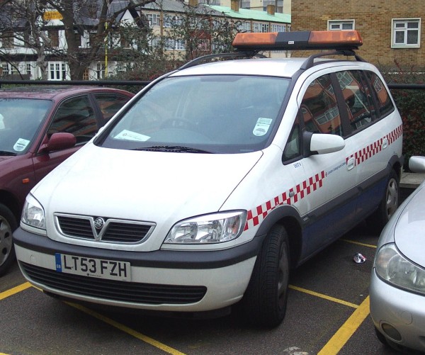 Details: This smart Vauxhall Zafira was leased in 2003 for use as an Emergency Response Car by LUL. Numbered 5617V (LT53FZH), it was photographed at Acton in February 2004. |