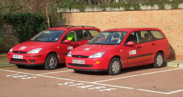 Details: The bus station at Cromwell Road, Kingston has seen a variety of service vehicles over the past few months but these have not normally included Ford Focus Estates. I was surprised therefore to find two present on February 18th 2004 including the oldest red example. 5036F (W324UAB) on the right was new in 2000 and had earlier been reported as withdrawn. 5288F (VE51FLD) on the left was one of 12 red examples leased in 2001. Apart from minor differences in livery and design (bumper & wheeltrims), it will be noticed that 5036F also lacks the roof bars which are used to mount the emergency lights. |
