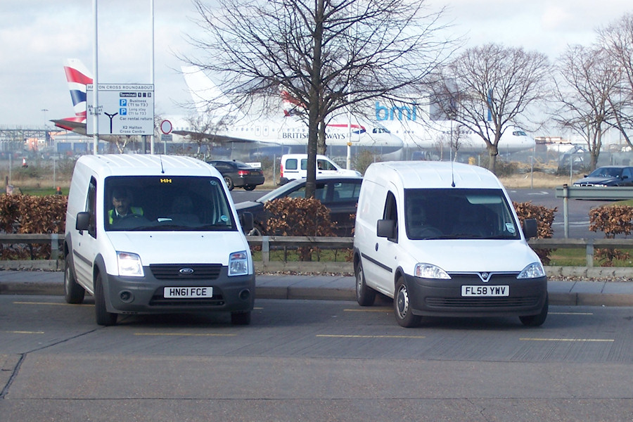 Details: London United's Hounslow Heath garage has used ageing Ford Fiesta vans as crew ferries for several years. Perhaps a sign of changes is this view taken at Hatton Cross Bus Station on 24th February 2012. Both vans are anonymous but new Transit Connect HN61FCE has the HH garage code in its windscreen. Vauxhall Combo FL58YWV is also unmarked but thought to be HH based as well. It seems that the new owners of London United do not think it necessary to apply company lettering to their support vehicles. A couple of unmarked white Ford Transit vans have also been seen at Shepherds Bush Garage, but have not been added to the database until confirmation can be obtained. |