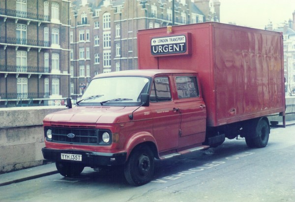 Details: The A-series was designed to fill the gap in Ford's range between the largest Transits and the smallest D-series lorries. However, it never achieved the same level of success as either of the other two models. A total of 8 A0609s were bought by London Transport, including 3 of these stretched Railway Breakdown Tenders. The use of a crew cab resulted in a very long wheelbase on these vehicles. New in 1979, they lasted until the late 1980s. 2135F (YYH135F) was photographed awaiting the call at Baker Street station on 28th December 1985. |