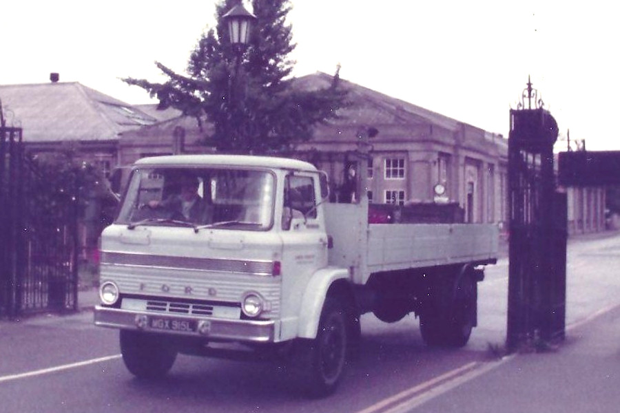 Details: Taken on 7th September 1982, this photograph shows Ford D1000 lorry 1781F leaving the 'front' entrance of Chiswick Works. Of the 143 Ford D lorries bought by London Transport between 1966 and 1981, this was the largest type. Two batches were bought, 1655F-1663F in 1971 and 1780F-1783F in 1972. 1662F and 1663F were badged as D1614s but this is thought to be due to a change in Ford's model numbers. The first batch comprised a mix of dropside and fixed-side lorries, while the second batch has always been recorded as being all fixed. However, as this photo clearly shows, at least 1781F had dropsides. It could have been modified, especially as the panelling on the bolster usually matched the sides in height. Other photos confirm that 1782F and 1783F had fixed sides. Another oddity of this vehicle is the chrome grille between the side indicators and the chrome bumper. It seems that these were carried only by these largest Ford D lorries, plus 1945F. |