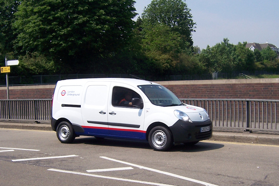 Details: A largish batch of (yet more) Renault Kangoo Maxi vans was delivered in May 2012, with fleetnumbers spread across a wide range of 73xx numbers. 7375R was photographed passing Acton Town Station on 28th May 2012. This van had yellow/red chevrons on the rear and appears to have joined the group of vehicles that regularly congregate around Griffith House every evening. |