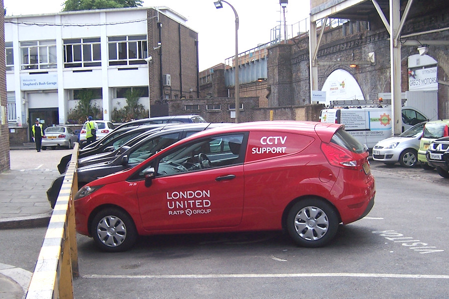 Details: At least two of London United's 22 new Ford Fiesta vans have additional 'CCTV Support' lettering, suggesting that they have replaced the youthful pair of Suzuki Alto cars and/or the slightly older Ford Fiesta van. FF20 is based at Shepherds Bush Garage (photographed there on 30th May 2012), while FF19 is at Fulwell. |