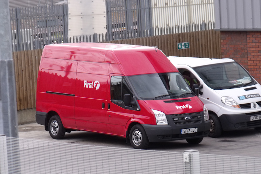 Details: The relatively new bus garage off Ruckholt Road in Leyton is operated by First London and known as Lea Interchange (with the code of LI). A new engineers van was allocated there in spring 2012, Ford Transit high-roof van SP12LUO replacing VW Transporter YT56AXA. It was photographed at home on 29th June 2012, showing its allover red livery relieved only by grey First logos. |