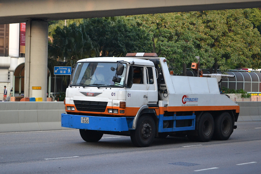 Details: From the far west (Swansea) to the far east now, with this view of Hong Kong Citybus Hino recovery truck 01 in Aberdeen Praya Road on 30th October 2011. The white/blue/orange livery is quite unlike the distinctive bus livery of yellow/red/blue. By the way, one of the changes I am considering for the next version of this website is to hive off all the non-London photos into a separate set of pages. Some feedback would be useful on this. Do you think they should be kept apart, or do you not mind flicking through the odd half-dozen provincial/overseas photos now and then? |