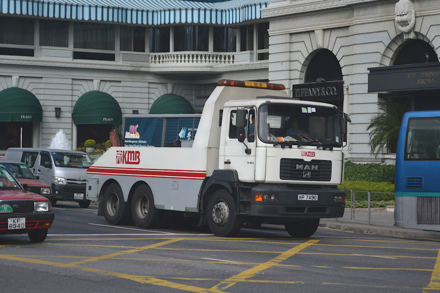 Details: The biggest bus operator in Hong Kong is actually KMB (Kowloon Motor Bus), although they were traditionally found mainly on the mainland (Kowloon) rather than on Hong Kong Island. Their MAN recovery truck KP7490 was photographed on Salisbury Road (HK) on 4th November 2011. |