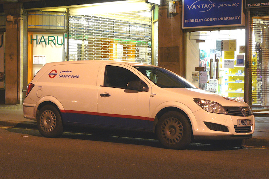 Details: Vauxhall Astra van 6968V is one of several vehicles which I have listed as being allocated to Baker Street but which in reality are only seen there at night-time. On 22nd August 2012 it was photographed parked on Melcombe Street, near to Baker Street station. Just apparent is the slightly smaller fleetnumber suffix letter V applied (to both sides). |