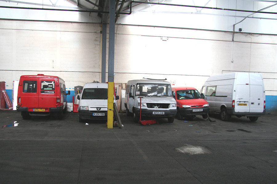 Details: A very interesting photo taken inside Abellio's Fulwell Garage on 12th May 2012 shows five service vehicles in varying states of repair. With the exception of Ford Transit crew van HV07KMY on the far right, all the vehicles have been marked up as withdrawn in our database. Several certainly were delicensed, perhaps being retained for spare parts. |
