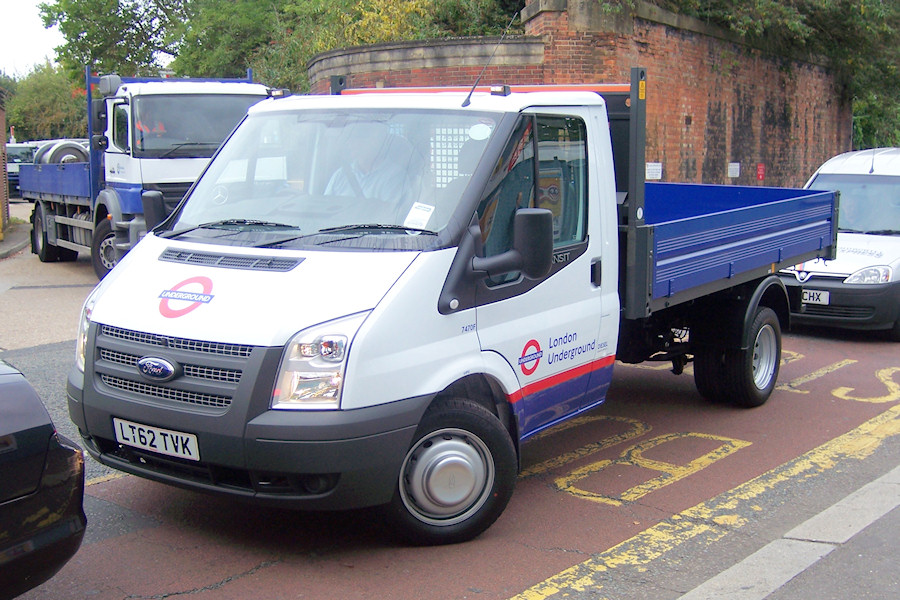 Details: The first '62-reg service vehicle to be shown on this site is Ford Transit dropside truck 7470F, photographed leaving Acton Works on 10th September 2012. Also visible are one of the Mercedes Axor lorries and an Iveco Stralis. |