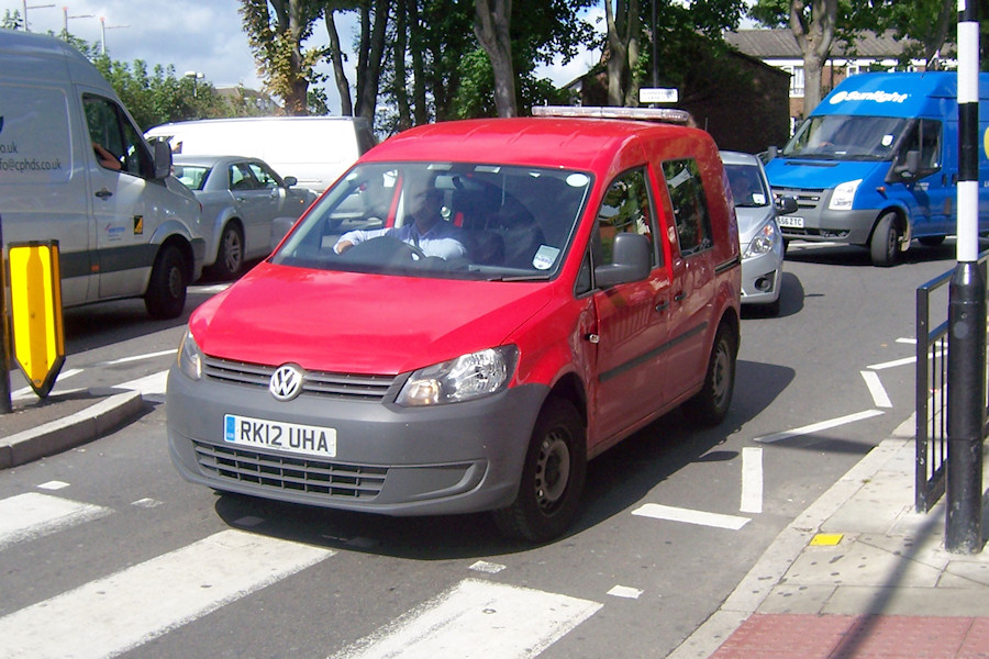 Details: Volkswagen Caddy crew van RK12UHA was new in March 2012, being seen before delivery at the dealership in Bedfont. It was unlettered at the time, and has evidently remained so. A fleetnumber is no doubt allocated, and the van could have been acquired to replace similar 6462VW. On 28th August 2012 Ray caught it at the top of Bollo Lane, no doubt heading for Acton works for inspection of the accident damage visible on the nearside. |