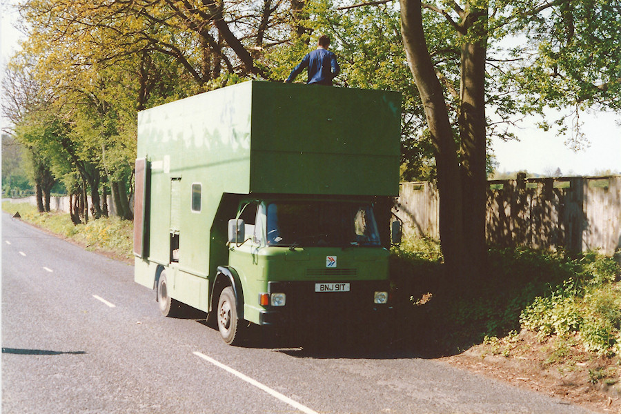 Details: Here is quite a rare view of a London Country tree lopper actually being used. 34F was one of two Ford D0710 lorries bought in 1979. Initially fitted with the bodies off the previous generation of tree loppers (former London Transport 1241F to 1244F) they were rebuilt with new bodies in December 1984. 34F was photographed near Oxted on 19th May 1986. Later that year it became part of the London Country South East (later KentishBus) fleet. The upper floor on these vehicles was at the level of the panel join on the front, the sides being solid apart from two drop-down sections on the nearside. There were openings in the floor to allow cut branches to be dropped into the main section of the body, while there was also presumably an internal staircase or ladder. At the back were two large doors, with wide hinges to allow the doors to fold against the bodysides as here. |