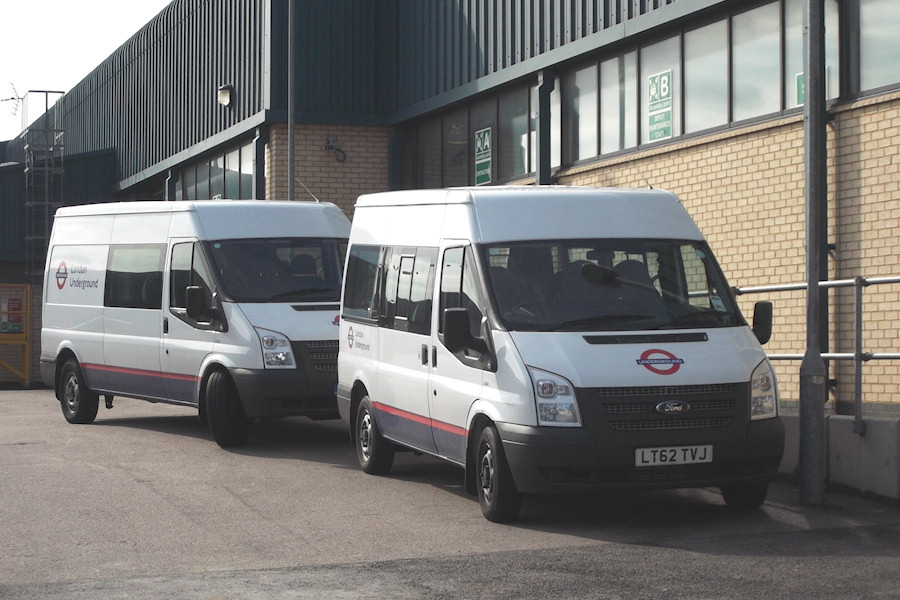 Details: 7489F is a Ford Transit minibus new in September 2012 and allocated to Northumberland Park Depot, where it appears to have replaced plain white 6801F. Similar 6779F was also at Northumberland Park but went off lease in July 2012 apparently without replacement. 7489F was photographed at the north entrance to the depot on 9th October 2012, parked in front of crew van 7323F. |