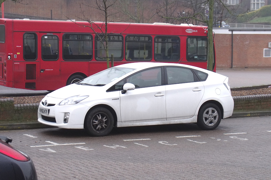 Details: KV60KTF was one of five Toyota Prius cars operated by TfL Private Hire in connection with taxi and mini-cab monitoring. It originally had a 'Taxi - Private Hire' roundel and was allocated to Cromwell Road Bus Station in Kingston. When photographed on 26th February 2013 it had had its roundels removed, and it was parked at Eltham Bus Station, normally home to similar KV60KTK. What all this means is not yet clear.... |