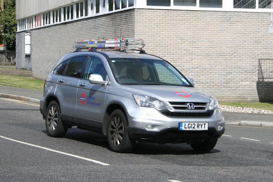 Details: More puzzles and speculation now. Two Honda CR-V cars were delivered in the first half of 2012 carrying silver livery without fleetnumbers. Nothing much unusual in that, several earlier CR-Vs were also numberless. However, this pair did not appear in the official fleetlist that we received in October that year. The list had been edited to remove most of the unmarked cars, and any police or security-related vehicles. As far as we know, the CR-Vs are used by electrical engineers, and they are certainly what you would call 'liveried', even if the colours are non-standard. I think they may have been removed in error, and I also think it likely that they are both allocated fleetnumbers. However, there aren't very many unclaimed numbers for this period. 7280 and 7310 are possible candidates, or they could be 7459 and 7468. Hopefully a future list will reveal all. LG12RYT was photographed on Bollo Lane on 11th September 2012. |