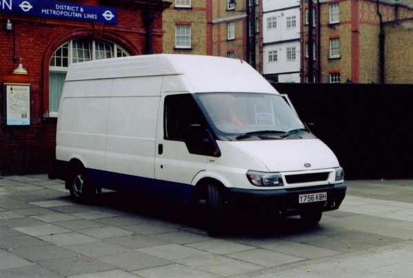 Details: A variety of Ford Transit vans are used in support of the underground. Seen here is 5225F (Y756KBH), a long-wheelbase, high-roofed type, with no lettering other than the fleetnumber. |