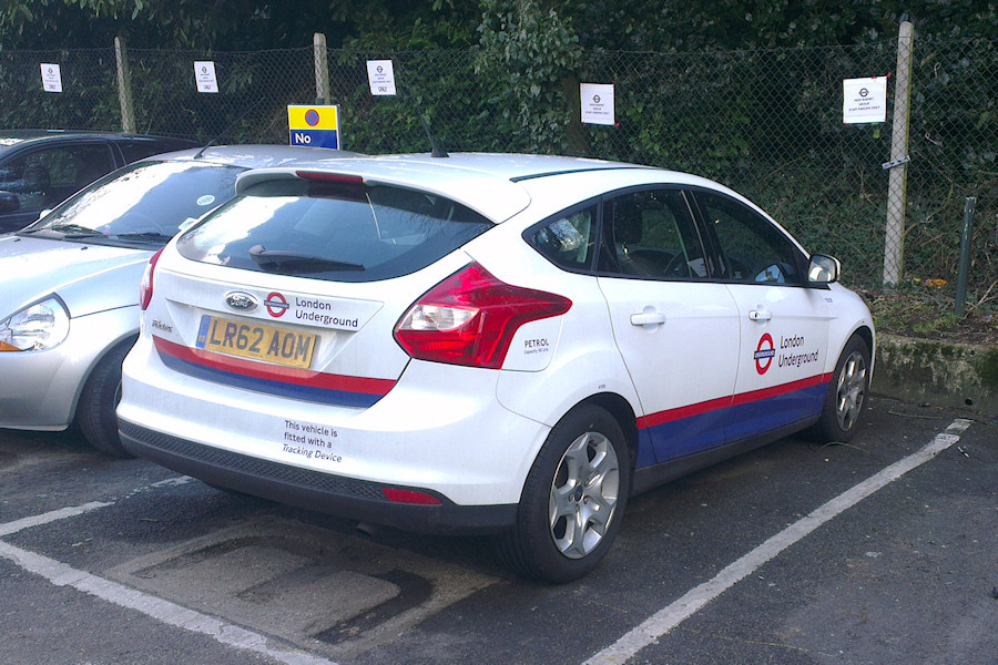 Details: 7502F is rather unusual in being a petrol Ford Focus hatchback, rather than the more common diesel estate. It was leased in October 2012 and appears to be allocated to High Barnet Station (where it was photographed on 14th March 2013). High Barnet is a Tube Lines station but vehicles used by LUL train operations carry LUL livery as seen here. Note the red/blue at the bottom of the hatch. |