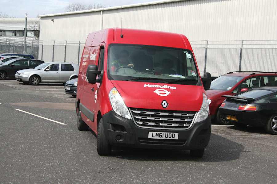 Details: Metroline acquired three Renault Master vans in late 2011, replacing a trio of 4-year old Mercedes-Benz Sprinter vans. Photographs of the new vans have been slow in coming, the first of LM61UOD being this one of it arriving at the Perivale CELF works on 17th April 2013. LM61UOH is still to be captured... |