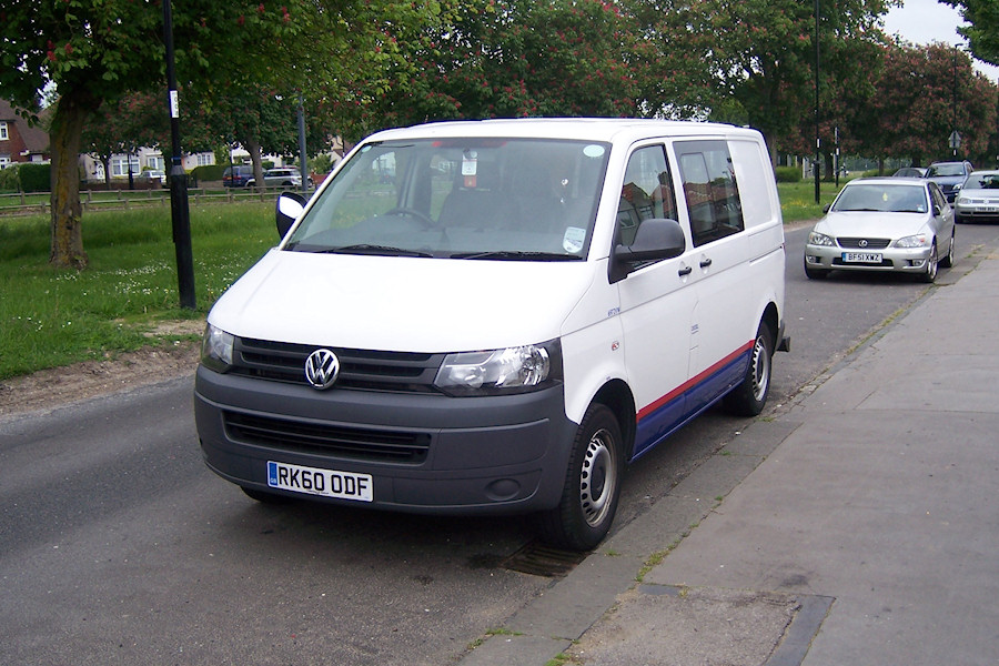 Details: Volkswagen Transporter crew van 6972VW gets about a bit, judging by the sightings reported. Nominally allocated to Hainault Depot, it seems to actually live in New Addington, as here on 11th June 2013. Along with similar 6994VW, it is in LUL livery but with logos on the rear only. |