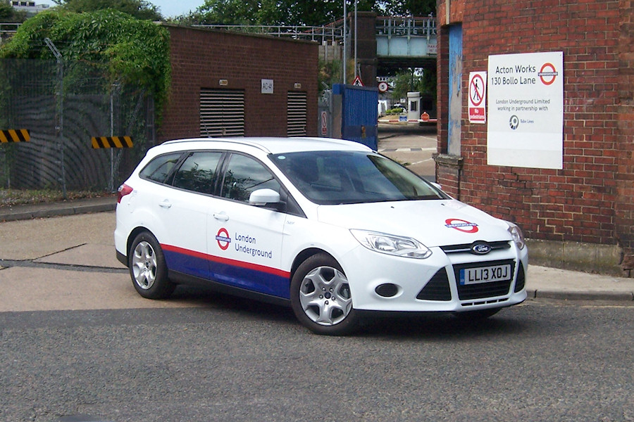 Details: At least eight Ford Focus estate cars were delivered to LUL in July 2013, six of which were visible in the staff car park on the 20th. You can't read the fleetnumbers through the bushes and fences at this location so we will have to wait for further reports. It is not clear where these cars are destined for, there being no noticeable batches of similar vehicles due for replacement. One that we do know the number for is 7685F, caught leaving the works on 26th July 2013. |