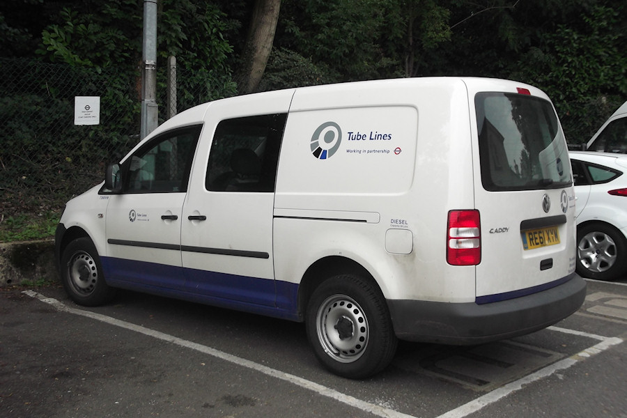 Details: This photo of rarely reported Volkswagen Caddy Maxi crew van 7260VW at High Barnet Station on 23rd August 2013 highlights the extended length of this variant. One of a batch of 6 similar vans, they are allocated to Westferry Circus in Docklands. Resident Ford Focus hatchback 7502F is just visible beyond. |