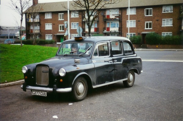 Details: The tendering of bus routes in London has led to increasing instances of operations remote from garages. This is in turn led to the requirement for crew ferry vehicles, to transport the crews from the bus garages to route terminals or changeover points. London taxis are ideal for this job and presumably quite cheap to acquire. East London used this black FX4, C277CUU, which was given the fleetnumber SD1, referring to its home base of Stratford bus garage (SD). It was photographed at Stratford on 16th November 1993. |