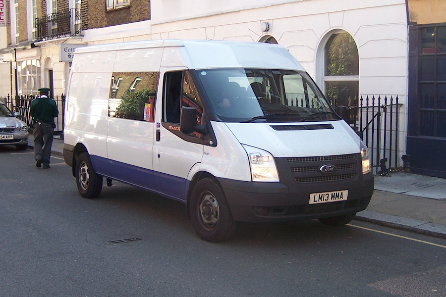 Details: A rare sight these days (apart from on delivery) is of a vehicle in unmarked white/blue livery. Ford Transit crew van 7618F was new in June 2013 and based at the Euston control centre. It can sometimes be glimpsed parked behind the gates there but on 20th August 2013 Ray caught it arriving on Euston Street. |