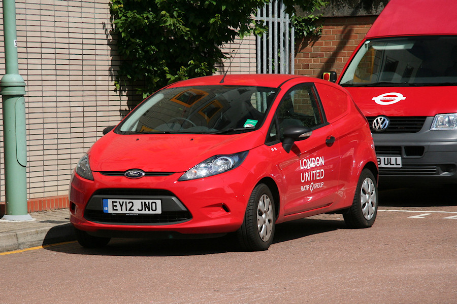 Details: When new in Spring 2012, London United Ford Fiesta van FF19 (EY12JNO) featured large 'CCTV Support' lettering on its bodysides. It was not reported at all for over a year but was then found at Cromwell Road Bus Station in Kingston on 10th July 2013, with the lettering removed. Also worth mentioning is LBSL Volkswagen Transporter van 6823VW. Three vehicles from this batch were returned off lease in September 2013, seemingly without replacement. |