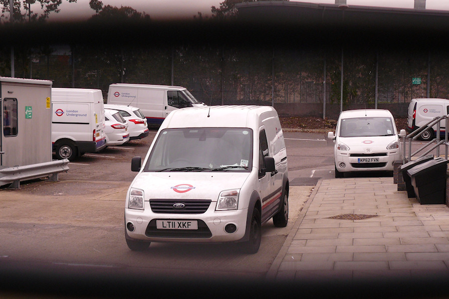 Details: During the latest open weekend at the LT Museum Depot in Acton, I was able to peek into the adjoining yard of Hearne House. A total of nine service vehicles were present, and comparing my photos with some aerial shots on the internet, it didn't look like there would be room for many more. At present the database shows 21 vehicles being based here but presumably some are out-based, as happens at Griffith House, Frank Pick House etc. Another notable aspect was that all nine vehicles were different. Nearest the camera is Ford Transit Connect van 7076F, with Peugeot Partner Tepee estate 7616P on the right. Ford Transit box truck 6685F was out of frame on the left, those visible being (from left to right) Transit crew van 7620F, Mondeo 7380F, Focus 7461F, Transit van 7486F and Renault Kangoo Compact 7325R. As will be seen, Transit Connect crew van 7275F was parked around the corner on the right. 2nd November 2013. |