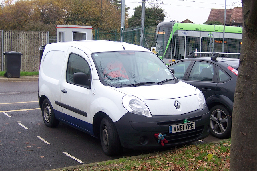 Details: As far as we know, there are only three Renault Kangoo Compact vans in the central fleet, making it much the rarest variant. The first pair were new in late 2011 and appear to have functioned as pool vehicles with unmarked livery to suit. 7140R has been at Stratford Market and Acton Works but in autumn 2013 moved on to Therapia Lane Tramlink Depot, perhaps as a replacement for Vauxhall Combo van 6579V. It was photographed at the depot on 28th November 2013 sporting some rather cute decorations. |