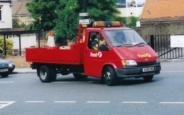 Details: A long and convoluted evolution has seen First wind up with sizeable bus operations in both East and West London, with a smaller outpost in the Orpington. The use of local names has been phased out in favour of the sort of branding seen here. K365OBG is a Ford Transit dropside truck photographed at Uxbridge on 23rd August 2003. |