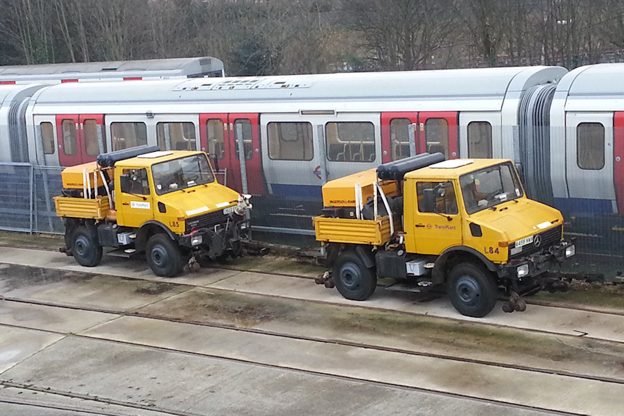 Details: The destination of the Unimog road-rail trucks that left Acton Works on 21st January 2014 was... Acton Museum Depot. They were photographed in the yard there (from Hearne House) on the 28th. I doubt this is their final move though. The Museum could want one, either for use or preservation, but surely they wouldn't want them both. Further developments are awaited. This photograph does show that, apart from some badging differences, and the front coupling on L85, the two trucks are very similar. |