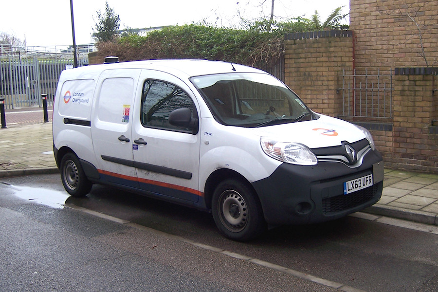 Details: There were reports of more new vehicles in London Overground livery through February 2014, one of them being Renault Kangoo Maxi van 7769R. It was photographed on Oldfield Grove in Surrey Quays (near to the Silwood Depot site) on the last day of the month, and differed from the earlier Kangoos in not having a roof rack. |
